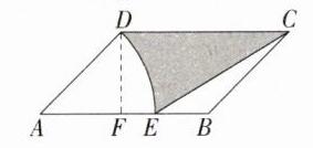 答案:$5\sqrt{2}-\pi$ 解析:如图,过点$D$作$DF\perp AB$于点$F$,$\because AD=\frac{2}{3}AB$,$AB = 3\sqrt{2}$,$\therefore AD=\frac{2}{3}\times3\sqrt{2}=2\sqrt{2}$,$\because\angle BAD = 45^{\circ}$,$\therefore DF = AD\cdot\sin45^{\circ}=2\sqrt{2}\times\frac{\sqrt{2}}{2}=2$,$\because AE = AD = 2\sqrt{2}$,$\therefore EB = AB - AE=\sqrt{2}$,$\therefore S_{阴影}=S_{\square ABCD}-S_{扇形DAE}-S_{\triangle EBC}=3\sqrt{2}\times2-\frac{45\pi\times(2\sqrt{2})^{2}}{360}-\frac{1}{2}\times\sqrt{2}\times2=5\sqrt{2}-\pi$。