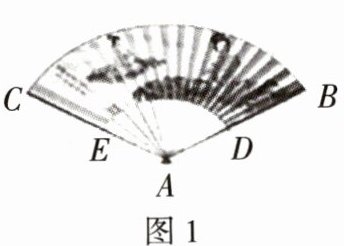 (1)如图1,一折扇完全打开后,若外侧两竹片AB,AC的夹角为120°,$l_{\overset{\frown}{BC}}$ = 20π cm,$l_{\overset{\frown}{DE}}$ = $\frac{20}{3}\pi$ cm,求扇面的面积.