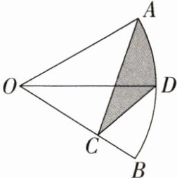 9.推理能力 动点最值问题(2023内蒙古通辽中考)如图,在扇形AOB中,∠AOB = 60°,OD平分∠AOB交$\overset{\frown}{AB}$于点D,点C是半径OB上一动点,若OA = 1,则阴影部分周长的最小值为 ( )