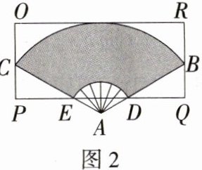 (3)如图2,若要从矩形OPQR中剪出符合第(1)问题干中要求的扇面BDEC,求矩形OPQR的长与宽的最小值.