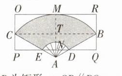 ∴ S = $\frac{xπ}{360}$($\frac{180m}{xπ}$ + $\frac{180n}{xπ}$)h = $\frac{1}{2}$(m + n)h cm².\n(3)连接BC,过点A作AN⊥DE于N,延长AN交BC于T,交OR于M,如图.