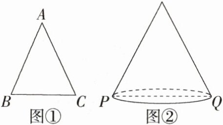 (2)学以致用:如图②,圆锥的母线长为9,底面圆的直径PQ = 8,一只蚂蚁从点P沿着圆锥的侧面爬行到点Q,求蚂蚁爬行的最短路径长.(精确到0.1. 参考数据:$T(160°)\approx1.97$,$T(80°)\approx1.29$,$T(40°)\approx0.68$)