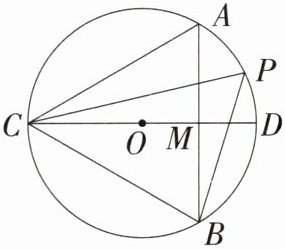 15.(6分)如图,已知CD是⊙O的直径,弦AB⊥CD,垂足为M,P是$\overset{\frown}{AB}$上一点,且∠BPC = 60°.试判断△ABC的形状,并说明你的理由.
