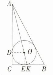 17.(6分)若⊙O为△ABC的内切圆,∠C = 90°,AO的延长线交BC于点K,AC = 4,CK = 1,求内切圆的半径.