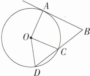 5.(2023黑龙江哈尔滨中考)如图,AB是⊙O的切线,A为切点,连接OA,点C在⊙O上,OC⊥OA,连接BC并延长,交⊙O于点D,连接OD,若∠B = 65°,则∠DOC的度数为 ( )