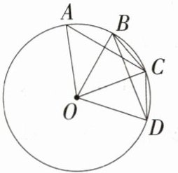 7.(2024黑龙江绥化期末)如图,圆O经过五边形OABCD的四个顶点. 若$\overset{\frown}{AD}$为150°,∠A = 75°,∠D = 60°,则$\overset{\frown}{BC}$的度数为 ( )