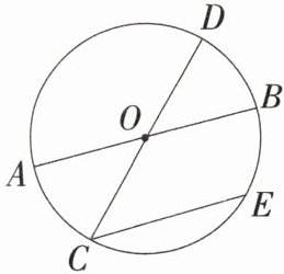15. [答案含评分细则](2024甘肃武威三模)(6分)如图,在⊙O中,AB、CD是直径,CE//AB且交⊙O于E,求证:$\overset{\frown}{BD}=\overset{\frown}{BE}$.