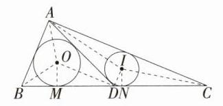 C.如图,连接OA,OB,OD,IA,IC,ID,过点O,点I分别作BC的垂线,垂足分别为M,N,在Rt△ABC中,$\angle BAC = 90^{\circ}$,AB = 5,AC = 12,