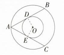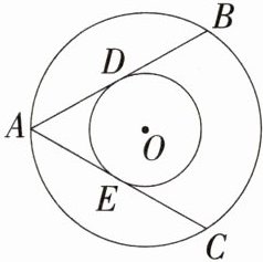 16. [答案含评分细则](2024江苏南京高淳一中期中)(6分)如图,在以点O为圆心的两个同心圆中,大圆的弦AB,AC分别与小圆相切于点D、E. 求证:AB = AC.