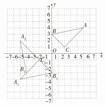 (2)如图,△A₂B₂C₁即为所求,$S_{\triangle A_{1}A_{2}B_{1}}=\frac{1}{2}\times6\times5 = 15$。 ……6分