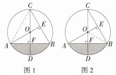 ∴OF = 1, ……4分 在Rt△AOF中,$AF=\sqrt{AO^{2}-OF^{2}}=\sqrt{2^{2}-1^{2}}=\sqrt{3}$, 则AB = 2AF = $2\sqrt{3}$,