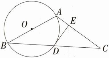 20. [答案含评分细则](2024安徽江淮名校大联考)(8分)如图,△ABC中,以AB为直径的⊙O交BC于点D,DE是⊙O的切线,且DE⊥AC,垂足为E.