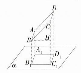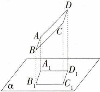 5.如图,正方形纸板ABCD在投影面α上的正投影为A₁B₁C₁D₁,其中边AB、CD与投影面平行,AD,BC与投影面不平行.若正方形ABCD的边长为5 cm,∠BCC₁ = 45°,求其投影A₁B₁C₁D₁的面积.(M9225001)