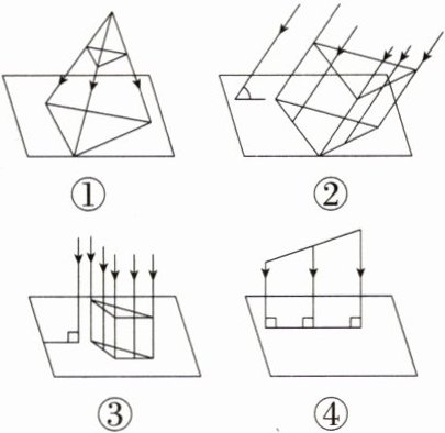 解析:①不是平行投影;②中的投射线不垂直于投影面,不是正投影;③④的投影是正投影。