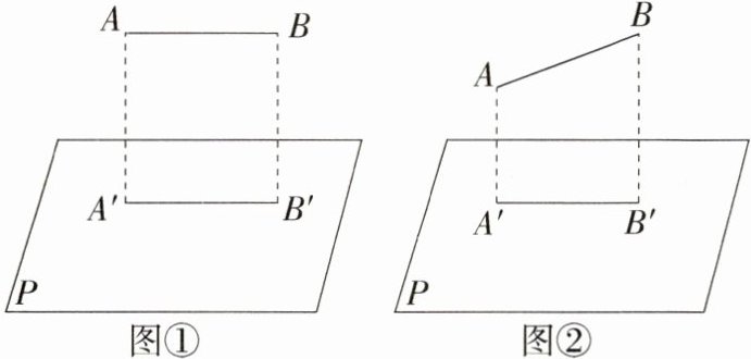 (1)如图①,当AB平行于投影面P时,它的正投影A'B'的长是多少?
