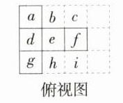 (主视图、左视图、俯视图分别为不同的由小正方形组成的图形) (2)4. 详解:如图,为保持主视图不变,e、f处不可添加小正方体. 为保持左视图不变,a、g处不可添加小正方体,故最多可以在b、c、h、i处各添加一个小正方体,即最多还可以添加4个小正方体。 (俯视图为九宫格形式,标注了a - i位置)
