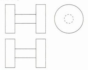 (主视图和俯视图为类似“工”字形,左视图为带虚线圆)