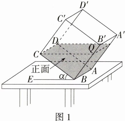 11.空间观念 如图,一透明的敞口正方体容器ABCD - A'B'C'D'中装有一些液体,棱AB始终在水平桌面上,容器底部的倾斜角为α(∠CBE = α).(M9225004)