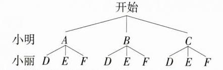 2.(2024江苏沛县五中三模)如图,一段长管中放着三根同样的绳子,小明从左边随机选一根,小丽从右边随机选一根,两人恰好选中同一根绳子的概率是(M9226001) ( )