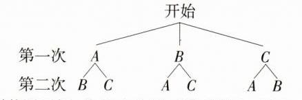 6.(2024广西柳州模拟改编)某市开展党史知识竞赛活动,某单位决定从报名的A,B,C三名优秀党员中通过抽签的方式确定两名优秀党员参加.将三名优秀党员的名字分别写在3张完全相同不透明卡片的正面,把这3张卡片背面朝上,洗匀后放在桌上,先从中随机抽取1张卡片,记下名字后,再从剩下的2张卡片中随机抽取1张,记下名字.(M9226001)