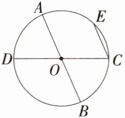 解析 根据圆的有关概念,题图中共有AB,CD,CE三条弦,其中AB、CD经过圆心,是直径. 以点A为端点的优弧是$\overset{\frown}{ABC}$,$\overset{\frown}{ABE}$,$\overset{\frown}{ABD}$.