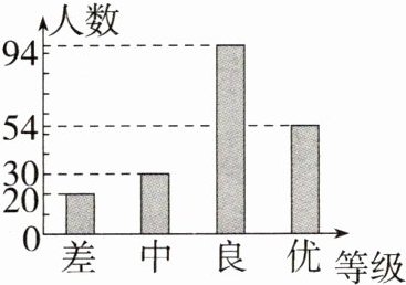 3.情境题·国家安全 每年的4月15日是全民国家安全教育日.某校举办了一次“安全知识”竞赛,老师从全校学生的答卷中随机抽取了部分答卷,将成绩按“差”“中”“良”“优”划分为四个等级,并绘制成如图所示的条形统计图.如果从中任意抽取一份答卷,测试成绩为哪一个等级的可能性最大( )