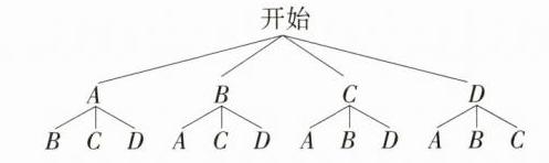 B.将四部名著《周髀算经》《算学启蒙》《测圆海镜》《四元玉鉴》分别记为A,B,C,D,根据题意可以画出如下的树状图: