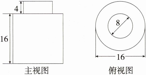 18. [答案含评分细则](2023重庆八中期中)(6分)一水壶可近似地看成由两个圆柱叠成的几何体. 主视图和俯视图如图所示. 请根据图中数据求底部圆柱的侧面积以及该几何体的体积.(结果均保留π)