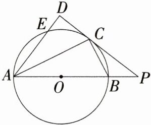 21. [答案含评分细则](2024安徽安庆二模)(8分)如图,AB是⊙O的直径,C为⊙O上一点,连接CA,CB,过点C作⊙O的切线交AB的延长线于点P,过点A作AD⊥PC于点D,AD与⊙O交于点E.