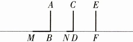 20. [答案含评分细则](2024山东禹城期末)(8分)如图,电线杆上有盏路灯O,小明从点F出发,沿直线FM运动,当他运动2 m到达点D处时,测得影长DN = 0.6 m,再前进2 m到达点B处时,测得影长MB = 1.6 m.(图中线段AB、CD、EF表示小明的身高)