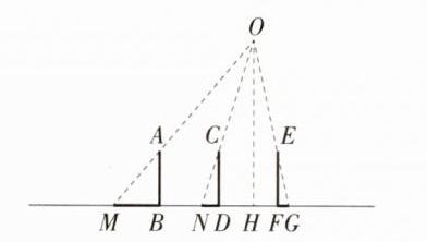 ∴ $\frac{MB}{MH}=\frac{ND}{NH}$, 即$\frac{1.6}{3.6 + x}=\frac{0.6}{0.6 + x}$,解得 x = 1.2. …… 5 分 设 FG = y m, 同理得$\frac{FG}{HG}=\frac{ND}{NH}$, 即$\frac{y}{0.8 + y}=\frac{0.6}{1.8}$,解得 y = 0.4.