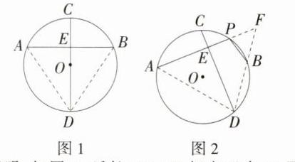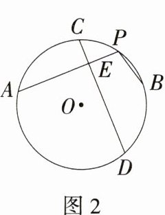 (2)从圆上任意一点出发的两条弦所组成的折线,称为该圆的一条折弦. 如图2,PA,PB组成⊙O的一条折弦. C是劣弧AB的中点,直线CD⊥PA于点E,则AE = PE + PB. 请写出证明过程.(提示:通过延长DB、AP相交于点F,再连接AD证明结论成立)