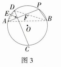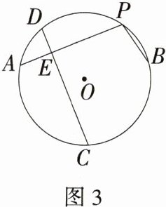 ∴ AE = PE + PB. …… 6 分 (3)AE = PE - PB. …… 10 分 **详解**:如图 3,连接 AD,BD,AB,DB、AP 相交于点 F,