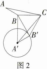 (2)如图2,在△ABC中,∠ABC = 150°,AB = 3,BC = 5,将△ABC绕点C逆时针旋转60°得到△A'B'C,连接BB',以A'为圆心,A'B'的长为半径作圆.