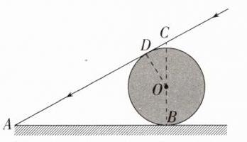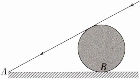 答案:(10$\sqrt{5}-20$) 解析:如图所示,设圆心为 O,易知光线与⊙O 相切,设切点为 D,连接 OD,连接 BO 并延长交直线 AD 于点 C。 根据同一时刻,阳光下物高和影长的比值相等,得$\frac{BC}{AB}=\frac{1}{2}$,所以 BC = $\frac{1}{2}AB = 5$米, 易证得 Rt△ABC∽Rt△ODC,则$\frac{AB}{OD}=\frac{AC}{OC}$。 因为 AC = $\sqrt{AB^{2}+BC^{2}}=\sqrt{10^{2}+5^{2}} = 5\sqrt{5}$(米),OC = BC - OB = BC - OD, 所以$\frac{10}{OD}=\frac{5\sqrt{5}}{5 - OD}$,所以 OD = (10$\sqrt{5}-20$)米。 故该球的半径为(10$\sqrt{5}-20$)米。