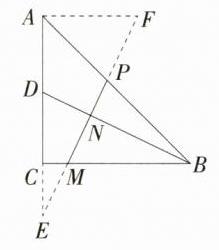 (2)如图,延长 PM,交 AC 的延长线于点 E,过点 A 作 AF//BC 交 MP 的延长线于点 F, 因为∠ACB = 90°,MP ⊥ BD 于 N,所以∠BDC + ∠DBC = 90°,∠BDC + ∠E = 90°,所以∠DBC = ∠E, 又因为∠ECM = ∠BCD = 90°,所以△EMC∽△BDC,所以$\frac{CE}{CB}=\frac{CM}{CD}$,$\frac{CE}{6a}=\frac{a}{3a}$,所以 CE = 2a, 因为 AF//BC,所以△ECM∽△EAF,△AFP∽△BMP,所以$\frac{CM}{AF}=\frac{CE}{AE}=\frac{2a}{2a + 6a}=\frac{1}{4}$,$\frac{AP}{BP}=\frac{AF}{BM}$,所以 AF = 4a,所以$\frac{AP}{BP}=\frac{4a}{5a}=\frac{4}{5}$。