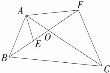 (2)因为∠ABE = ∠ACF,∠AOB = ∠COF,所以△AOB∽△FOC,所以 S△AOB : S△FOC = ($\frac{AB}{CF}$)² = $\frac{9}{16}$,因为 S△AOB = 9,所以 S△FOC = 16。