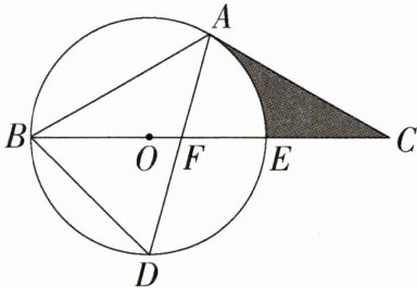 (3)因为∠BOD = 90°,OB = OD,所以△BOD 为等腰直角三角形,因为 BD = 1,所以 OB = $\frac{\sqrt{2}}{2}BD=\frac{\sqrt{2}}{2}$,所以 OA = $\frac{\sqrt{2}}{2}$,因为∠ADB = 60°,所以∠AOB = 2∠ADB = 120°,所以∠AOE = 60°,在 Rt△OAC 中,AC = $\sqrt{3}OA=\frac{\sqrt{6}}{2}$,所以阴影部分的面积 = $\frac{1}{2}×\frac{\sqrt{2}}{2}×\frac{\sqrt{6}}{2}-\frac{60·π·(\frac{\sqrt{2}}{2})^{2}}{360}=\frac{3\sqrt{3}-π}{12}$。