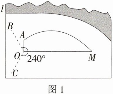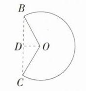 (3)如图,连接 BC,过 O 作 OD ⊥ BC 于点 D,则 BD = CD,∠BOD = ∠COD = $\frac{360° - 240°}{2}=60°$,在 Rt△OBD 中,cos∠BOD = $\frac{OD}{OB}$,所以 OD = OB·cos∠BOD = $\frac{5}{2}×\frac{1}{2}=1.25$(m)> 1 m,所以喷水装置安装位置不合理。