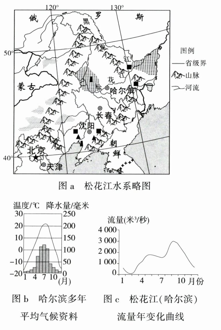 (新课标)综合思维 下图示意松花江水系和哈尔滨的气候、水文资料。据此完成 1—3 题。G8206001