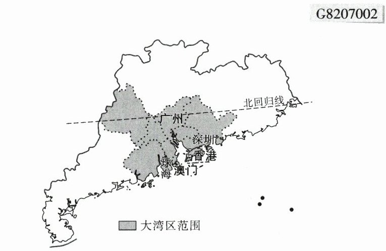 新课标 区域认知我国正加快推进粤港澳大湾区建设,打造国际一流湾区和世界级城市群。下图为粤港澳大湾区示意图,完成10—12题。G8207002