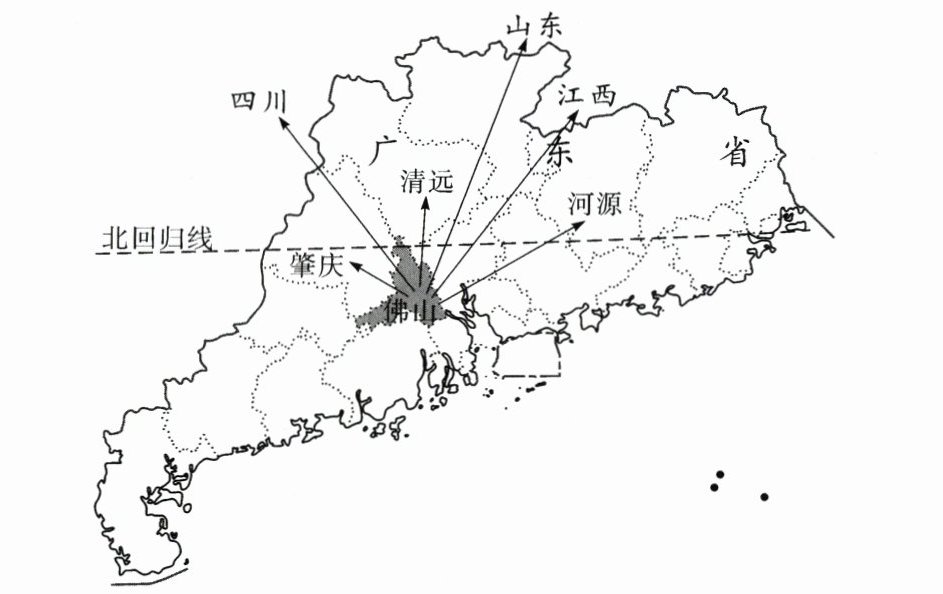 近年来,广东省佛山市陶瓷产业开始向外转移,但企业总部(主要有研发和销售中心等)仍保留在佛山。陶瓷产业转移分为两类:一类是就近转移到广东省内的河源、肇庆和清远等地;另一类是在外省各地布局多个陶瓷产区。读佛山陶瓷产业空间转移图,完成23—25题。