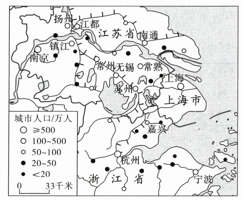 (2)说出河流在长江三角洲区域城市发展中的作用。(3分)