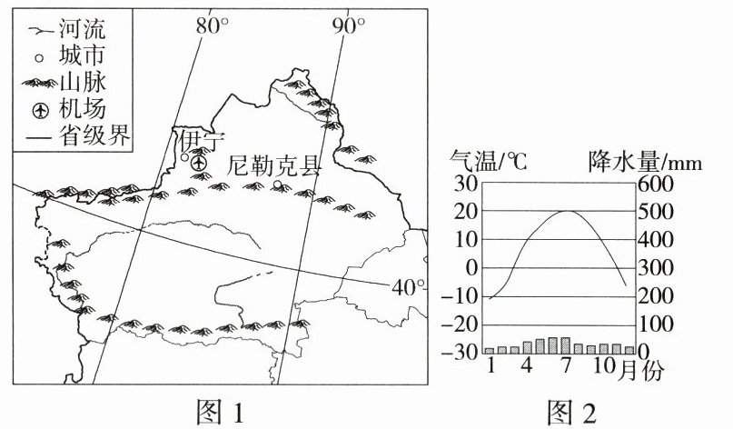 18. 含 评分细则(2024福建厦门思明二模,28,★★☆)(20分)“海鲜陆养”模式是在陆地营造类似于海洋的生态环境,人工养殖海产品。尼勒克县是新疆最大的三文鱼养殖基地,这里的三文鱼24小时内就能送达北上广等东部地区。图1示意尼勒克县位置,图2示意尼勒克县气候资料,读图完成下列问题。