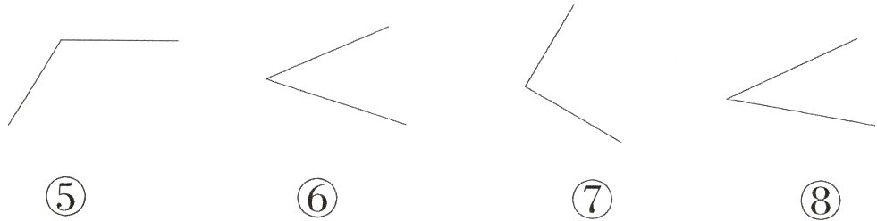 锐角:①④⑥⑧ 直角:②⑦ 钝角:③⑤