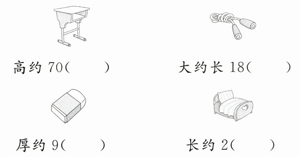 3. 小朋友的手长大约是1( ),这个单位可以用字母( )表示;5角硬币的厚度大约是2( ),这个单位用字母( )表示。