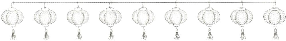 5. 一段路从头到尾挂有9个灯笼(如图),每2个灯笼之间相距90分米,这段路长多少米?(不考虑灯笼的宽度)(5分)