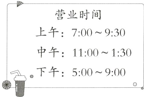 6. 如图是吉祥餐馆的营业时间,该餐馆全天的营业时间共( )小时。