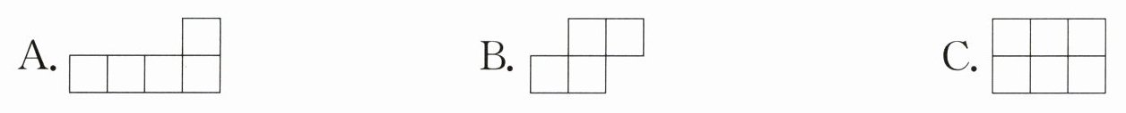 3.用面积为1平方厘米的小正方形拼成如下的图形,周长最长的是( ),面积最大的是( )。