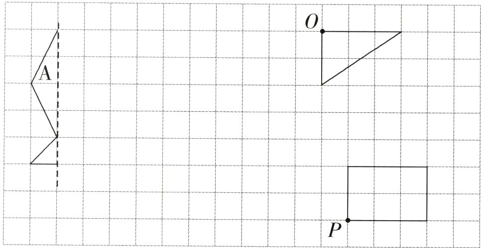 2. 将三角形绕O点顺时针旋转90°,将长方形绕P点逆时针旋转90°。